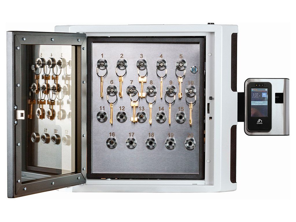 Комплект KMS-20 обеспечивает автономную работу системы и базовые функции программного обеспечения терминала, включая: создание базы данных ключей, пользователей, пин-кодов, карт и отпечатков пальцев, настройку прав доступа пользователей к ключам.Описание и состав оборудования комплекта KMS-20:Модуль KMS-20: