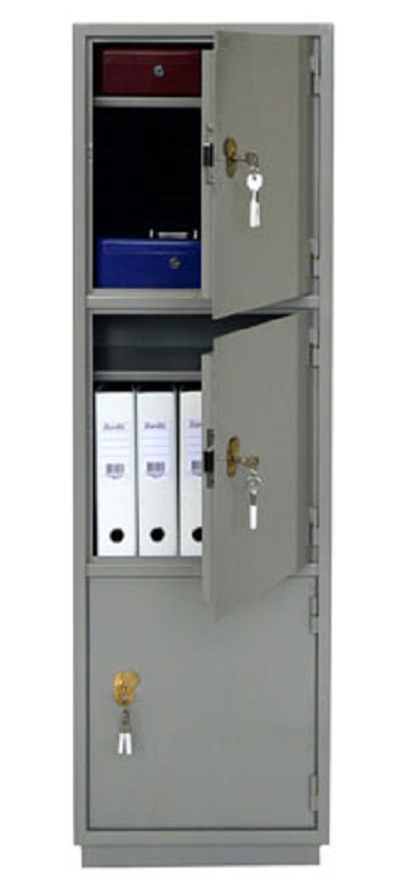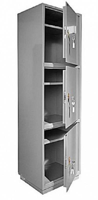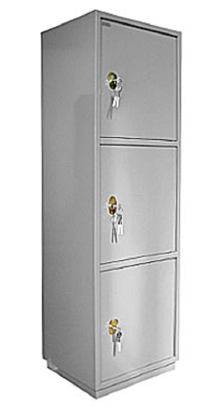 - Горизонтальная перегородка делит шкаф на 3 независимых отделения, запираемых собственной дверью.