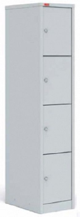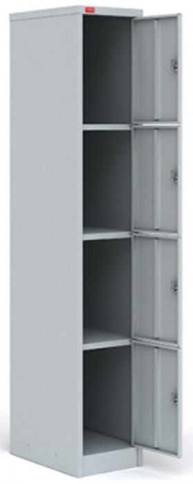 Односекционный металлический разборный шкаф с четырьмя отделениями используется для хранения сумок, пакетов, а также сменной одежды.