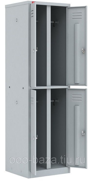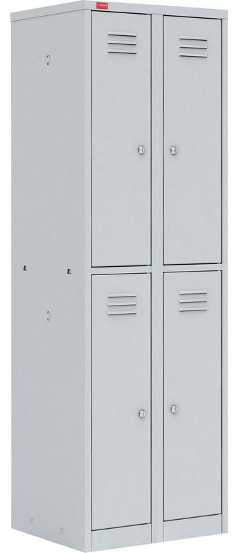Шкаф разборный металлический двухсекционный с 4-мя отделениями повышенной жесткости предназначен для хранения одежды в раздевалках бассейнов, спортзалов, школ.