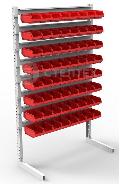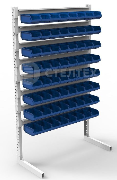 - Конструкция стойки легко позволяет использовать ящики различных размеров, размещать несколько видов ящиков на одной стойке, добиваться требуемой конфигурации хранилища.