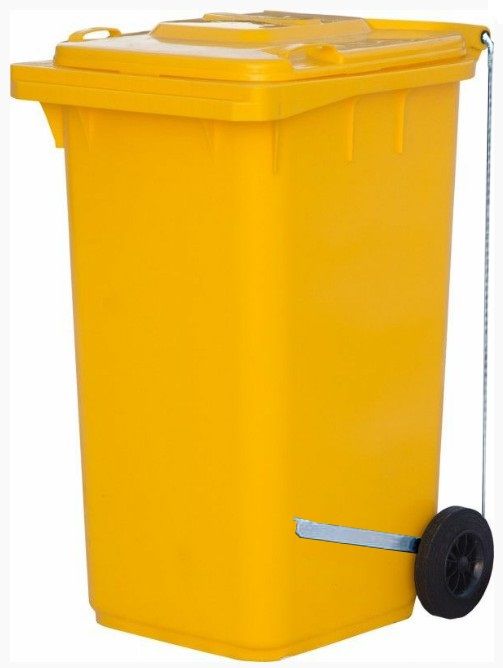 Пластиковый мусорный контейнер с педалью 240 л, желтый