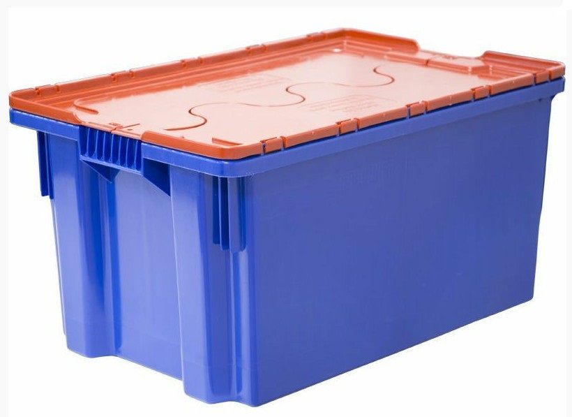 Пластиковый ящик 600х400х315 арт. 601-1 с крышкой, синий