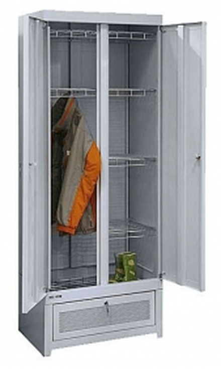 Такая модель шкафа будет незаменима на стройке, лыжных базах, в детских учреждениях, на заводах и фабриках.