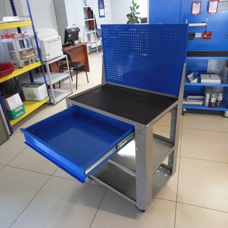 - Выдвижного ящик - 1 шт, нагрузка на ящик - 30 кг, цвет - синий RAL 5017