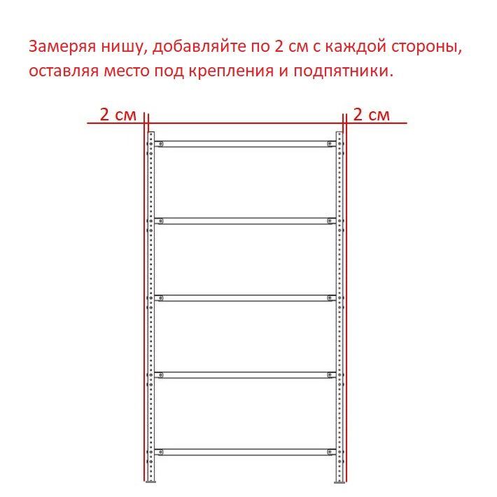 - Допустимая распределенная нагрузка на 1 полку до 50 кг и 100 кг (на секцию до 500 кг)