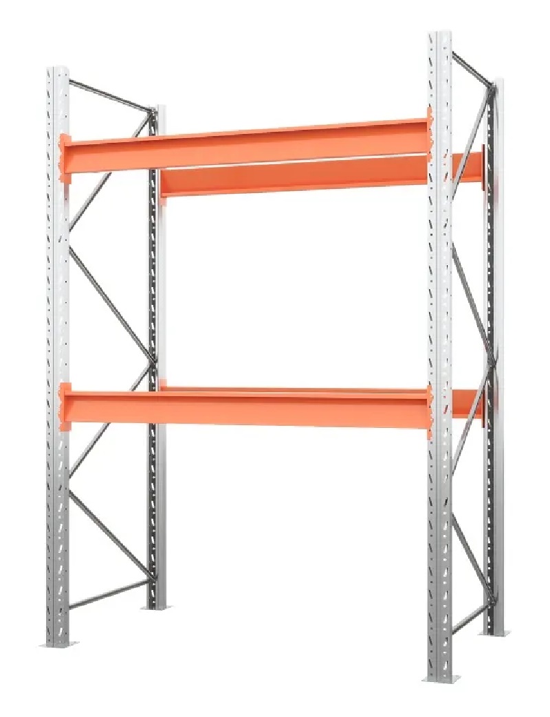- Фронтальные паллетные стеллажи состоят из сборных вертикальных рам и горизонтальных балок.