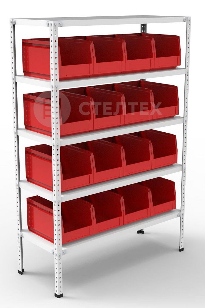- Верхняя полка без пластиковых ящиков уже входит в стоимость стеллажа и при расчёте количества полок не учитывается. Учитываются только полки с пластиковыми ящиками.