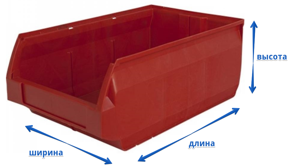 - Штабелируемые складские ящики (длина, ширина, высота):