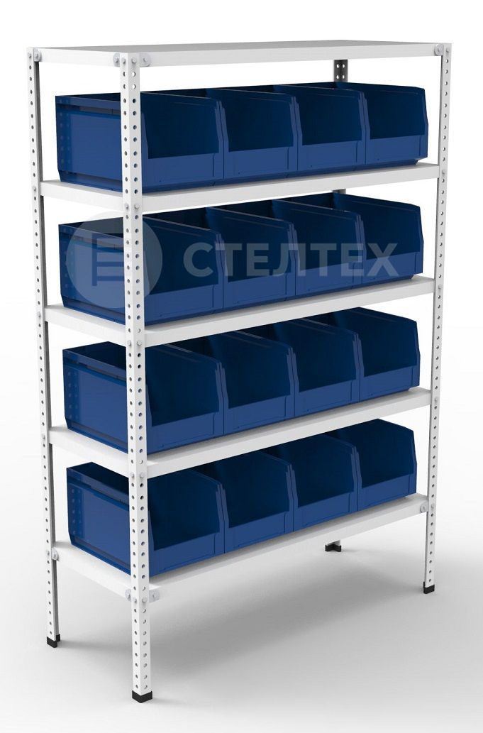 • Верхняя полка без пластиковых ящиков уже входит в стоимость стеллажа и при расчёте количества полок не учитывается. Учитываются только полки с пластиковыми ящиками.