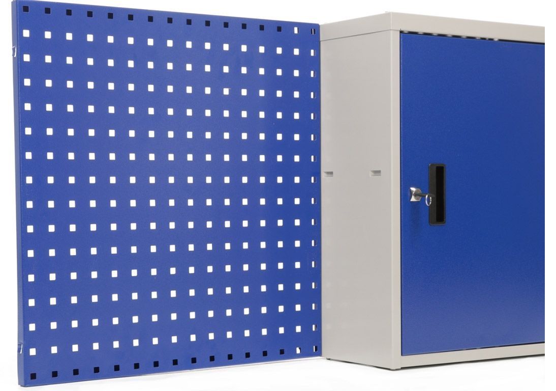 Перфорированный экран имеет квадратную перфорацию 10*10мм с шагом 38мм для крепления верстачных аксессуаров, имеет несколько вариантов крепления к стене: